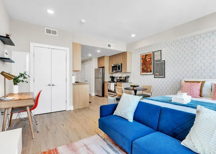 Positioned in the heart of Philadelphia, the Scenic City Studio - Walkable - Smart Tv promises an enchanting urban retreat. This modern haven is conveniently located just 450 meters from the vibrant Spring Garden district, providing guests with easy access to the city's rich cultural tapestry. Whether you're visiting for business or pleasure, the studio strikes a perfect balance between comfort and convenience.